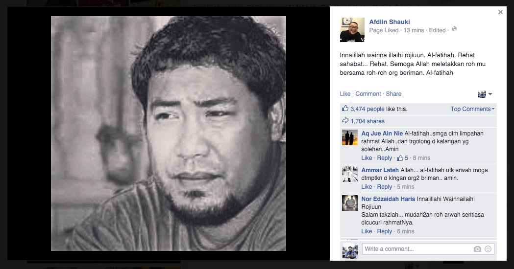 Dalam kemaskini terbaru menerusi Facebook tengah malam ini, Afdlin Shauki telah menyampaikan berita sedih apabila Yus Jambu atau nama sebenarnya Yussry Bin Edoo, 39 telah pergi meninggalkan kita semua.